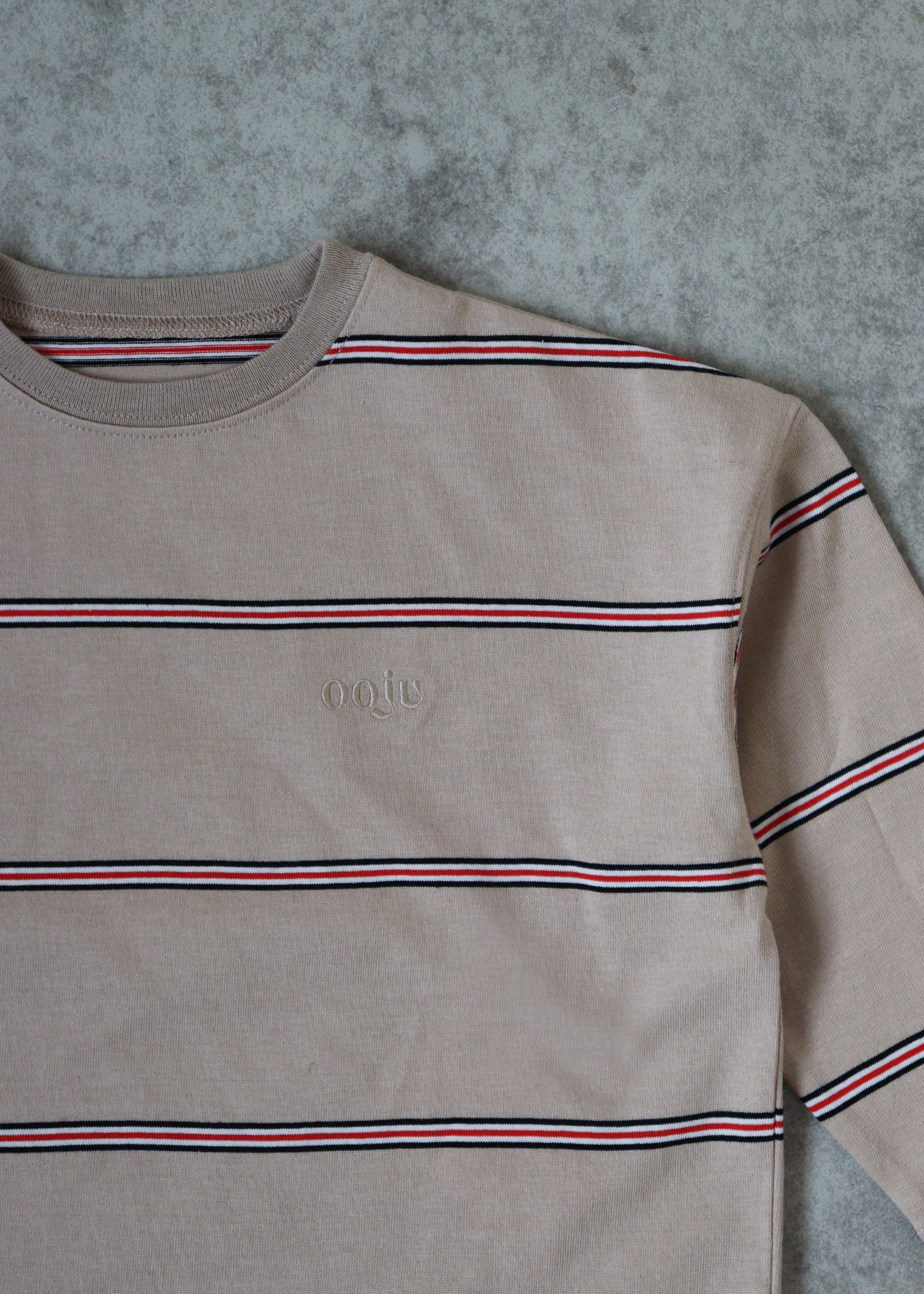トレンドのレトロなマルチボーダーは、コーディネートの主役になる1枚です。