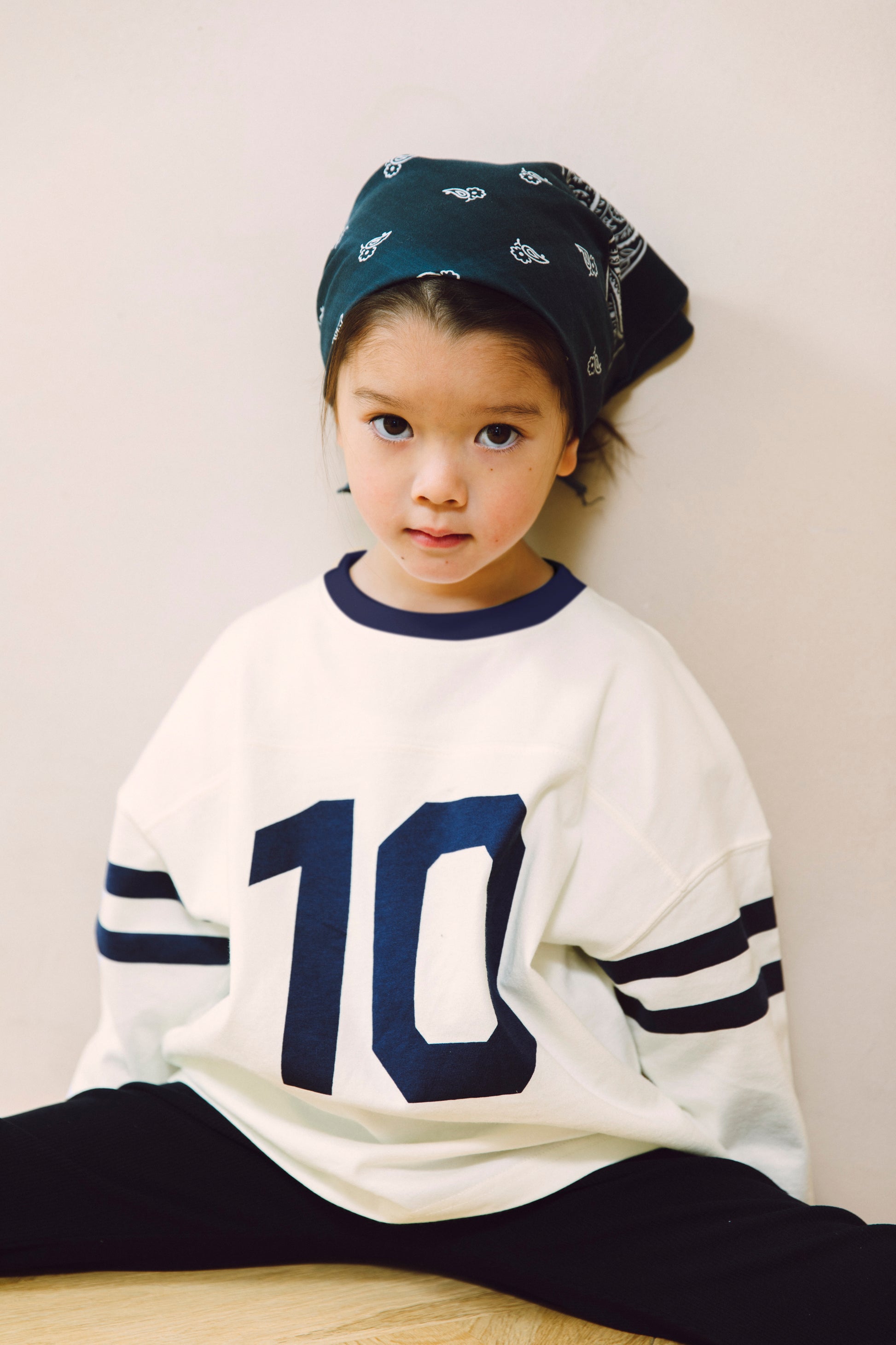 今シーズンは首元のリブもプリントと同じカラーにアップデートし、全体を引き締めるアクセントに。